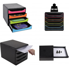Drawer set with 4 smooth action drawers of 55 mm for A4+ sized documents. Each drawer has a stop function.