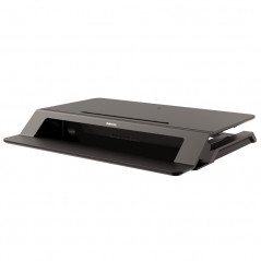 Transform your sedentary desk into a dynamic sit-stand workstation and add movement to your working day to stay active and healthy. Easily transition from sitting to standing with gas spring height adjustment. Flexible set up; the spacious top platform holds two monitors or a laptop, and the bottom platform fits a keyboard and mouse perfectly. Keep your phone or other accessories within easy reach with the convenient device channel on top platform. Arrives fully assembled - no complicated instructions, no mounting; just unpack and get started. Compatible with Lotus single and dual monitor arm kits.